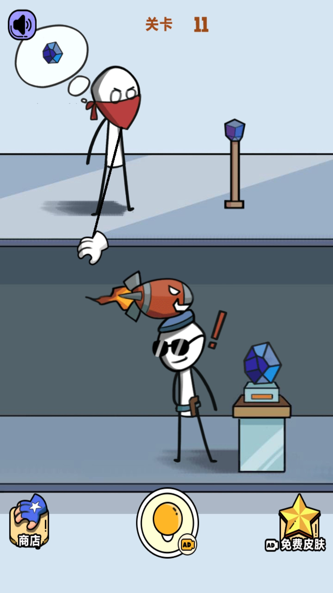 3、免费皮肤解锁方式多样,既可以通过观看广告,也能够完成特定关卡来获取。换上不同的火柴人外观,为游戏增添新鲜感,充分展现你的个性。