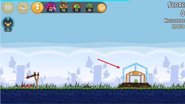 1. 第一关堪称经典,游戏开始时玩家会获得三只小鸟,只需朝着图中木板对角线位置发射,就能达成三星通关。