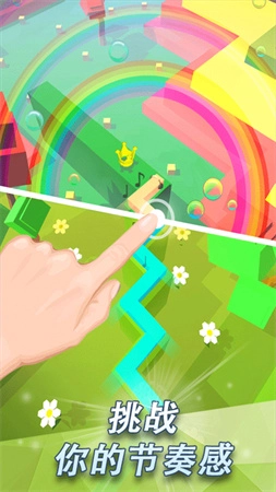 依旧按照音乐的节奏,向前连续点击三次,就能获得一颗钻石。需要留意的是,前方带有水晶标记的首个皇冠复活点。