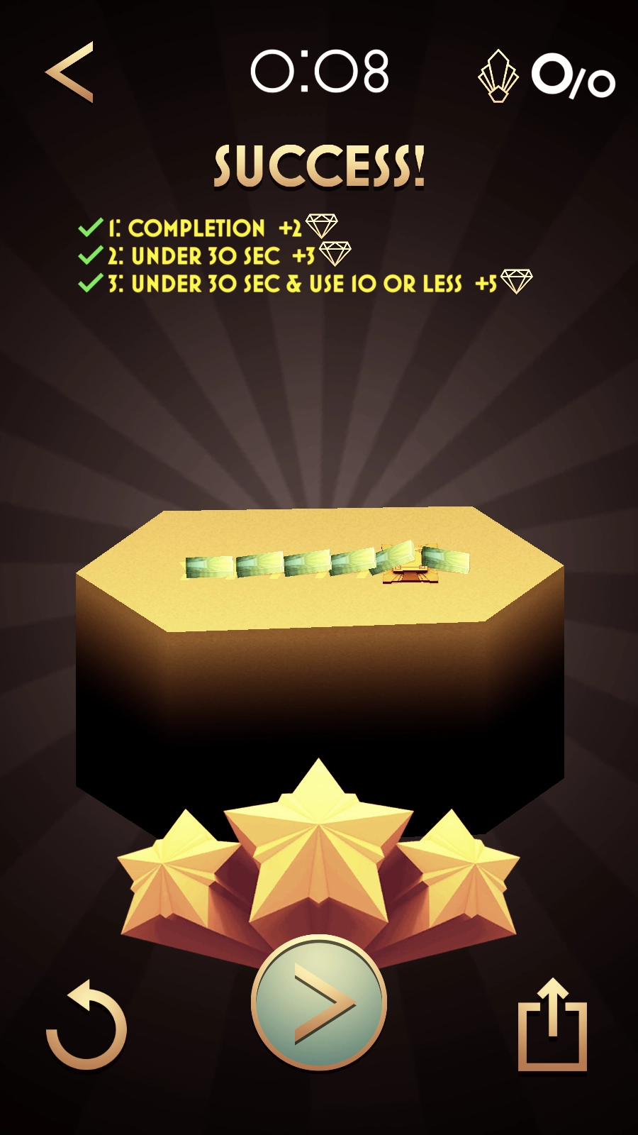 2、在任务说明界面点击“TAP - TO - CONTINUE”进入关卡。需留意上方三个任务目标:完成任务、在30秒内完成、在30秒内且使用10个以内[此处缺失具体对象,可补充如“道具”等]完成,要提前规划好通关策略。
