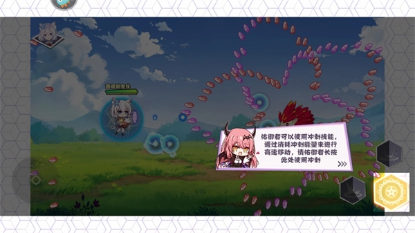 3、佑御者能够运用冲刺技能,借助消耗冲刺能量实现高速移动,烦请佑御者长按此处施展冲刺。