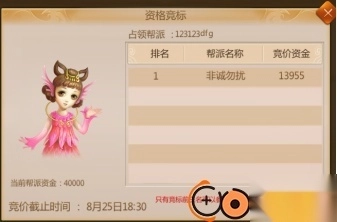 在非王城争夺时段,各帮派的帮主与副帮主能够参与王城争夺资格的竞标。