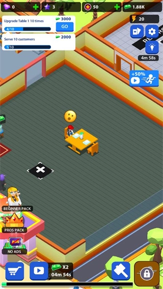 1、耗费500金币能够建造餐桌TABLE1,借此为餐厅增添座位,接待更多的顾客。