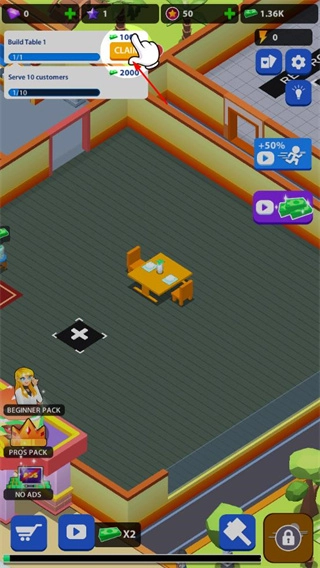 4、当完成相关任务之后,你能够点击“CLAIM”来领取奖励,积累各类资源,这些资源可用于餐厅的进一步建设与升级。