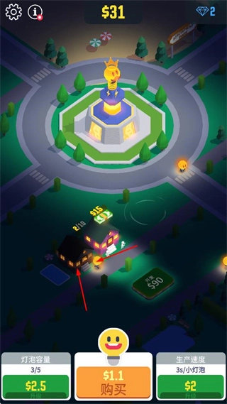 1. 可借助生产与收集小灯泡的方式来赚取金币,一开始便配备生产设施,该设施会自动生产小灯泡。