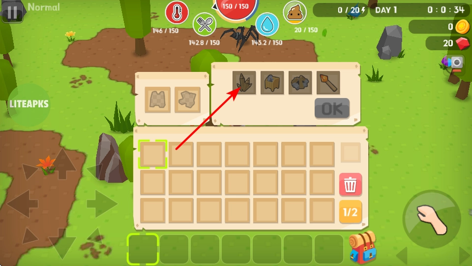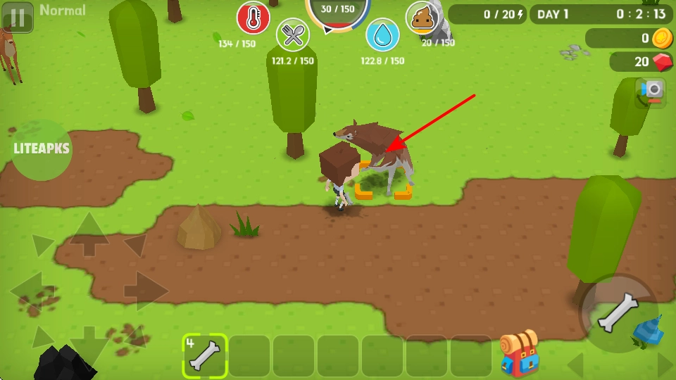 2、点击下方的骨头道具,就能装备此道具,它可用于相关战斗,或者与出现的动物进行互动,以此拓展游戏玩法。