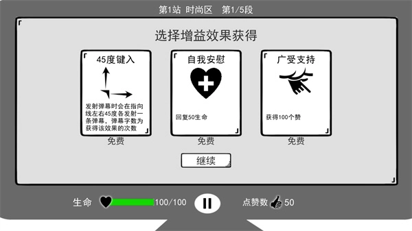 在消灭一部分敌人后,会出现一个小球,球内有两个图案。要是其中一个是心形图案,当它撞到墙壁反弹回来,就会变成一个赞。满血状态下适合去捡赞,残血时则捡心。赞和心若能同时获取,便堪称天下无敌。