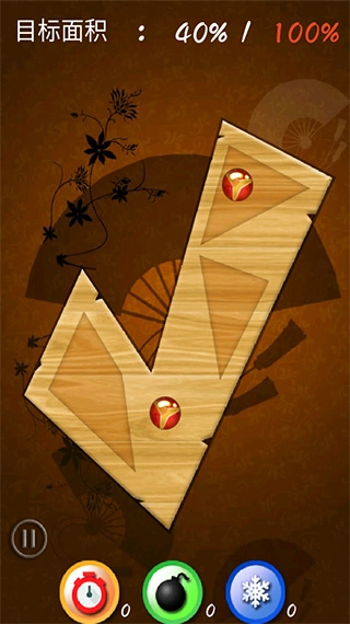 5、关卡的目标面积为40%,只要将木板切割至目标面积,就能闯关成功。