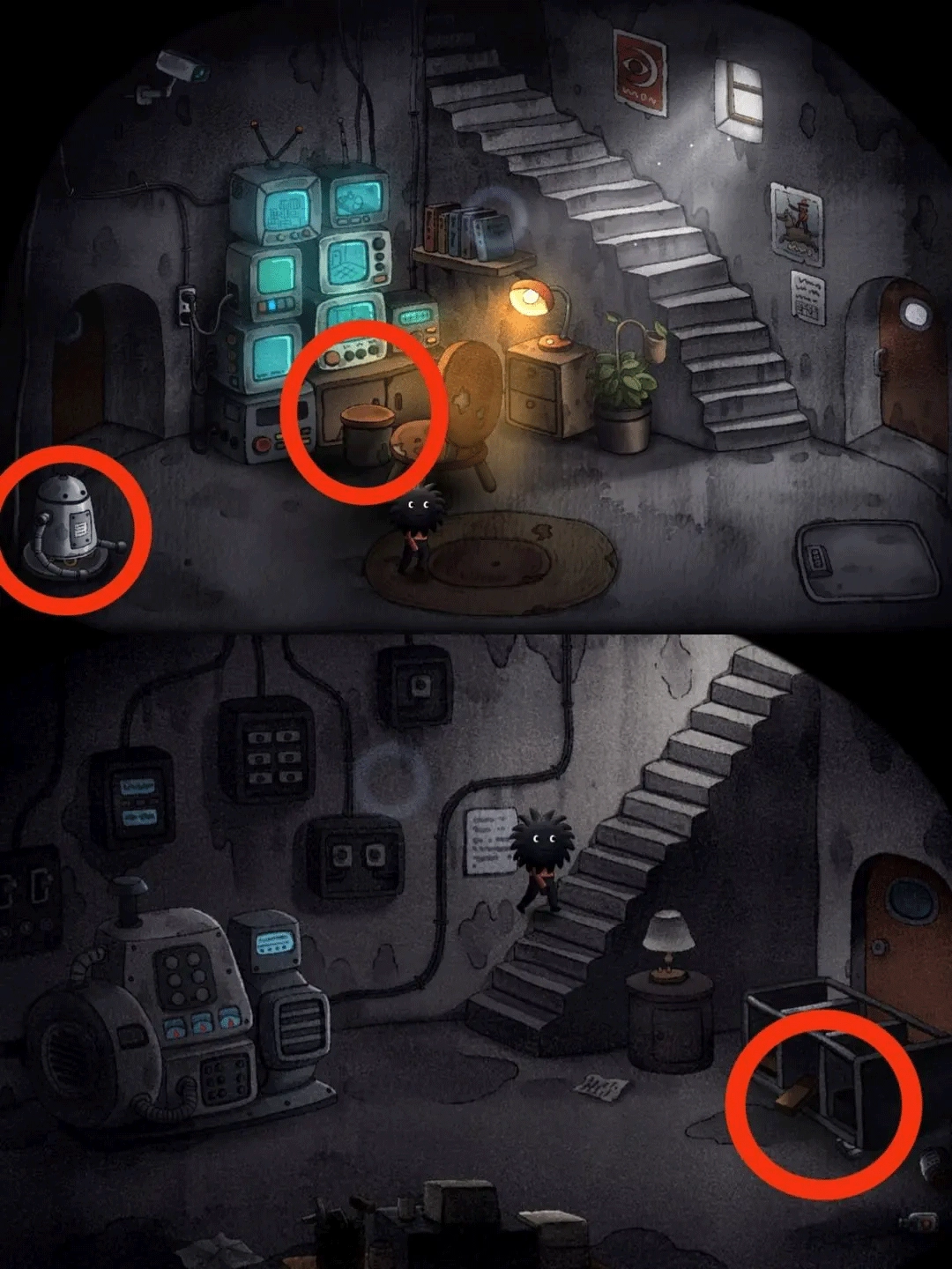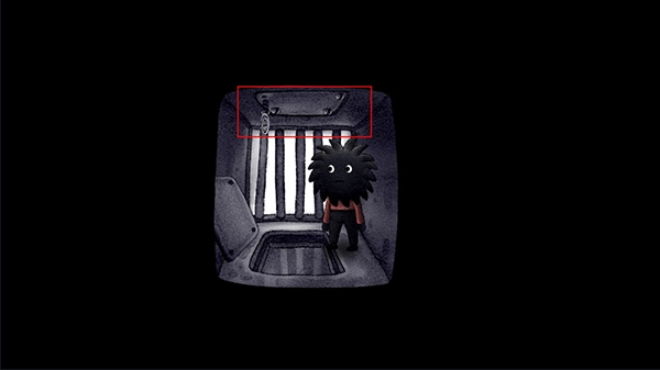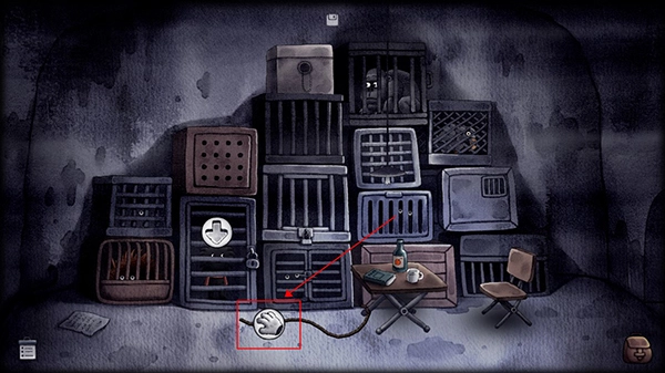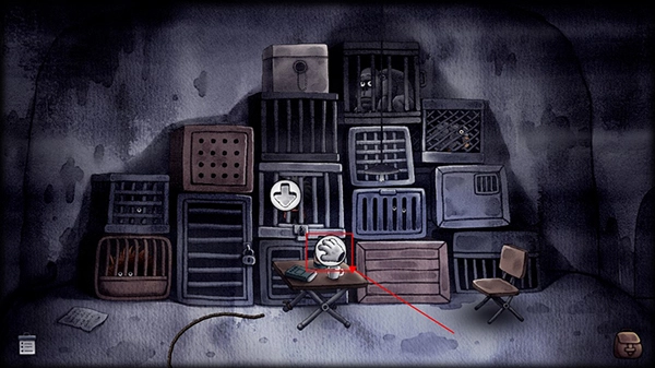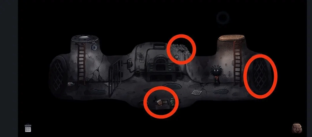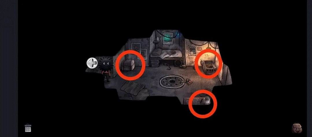 向右走到下方的收物箱处,在收物箱左边用磁铁吸附钢珠。之后回到大房间,把钢珠撒在楼梯上,接着打开收音机,然后躲进带有方形圆镜的柜子里,等待有人进来,待有人进入后便进入新场景。