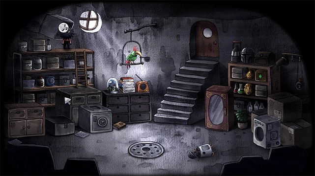 6、首先翻找垃圾桶,从中获取玩具铁轨。接着向右行走,来到楼梯下方的地下室入口处(此处密码藏在墙上的海报之中),点击眼月。之后从楼梯前往二楼,将铁轨拼接好,启动玩具车,这时右边的门便会打开。