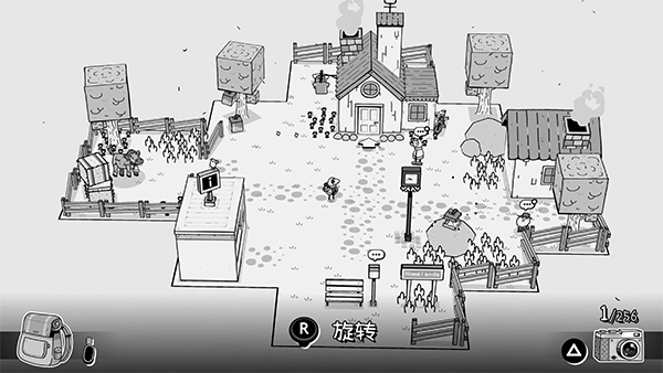 3、游戏设计融合了黑白手绘与3D元素。场景宛如童话图画书般简约,人物为纯粹的2D形式,搭配3D三维物体(像树木和建筑物),营造出别具一格的视觉层次感!