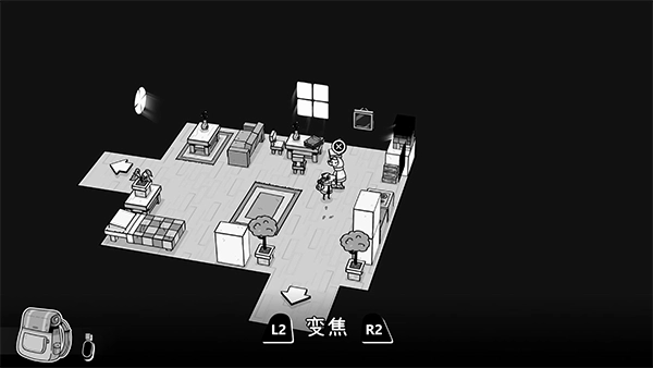 3、把窗户下的「背包」捡起来,顺着箭头所指方向离开房间。