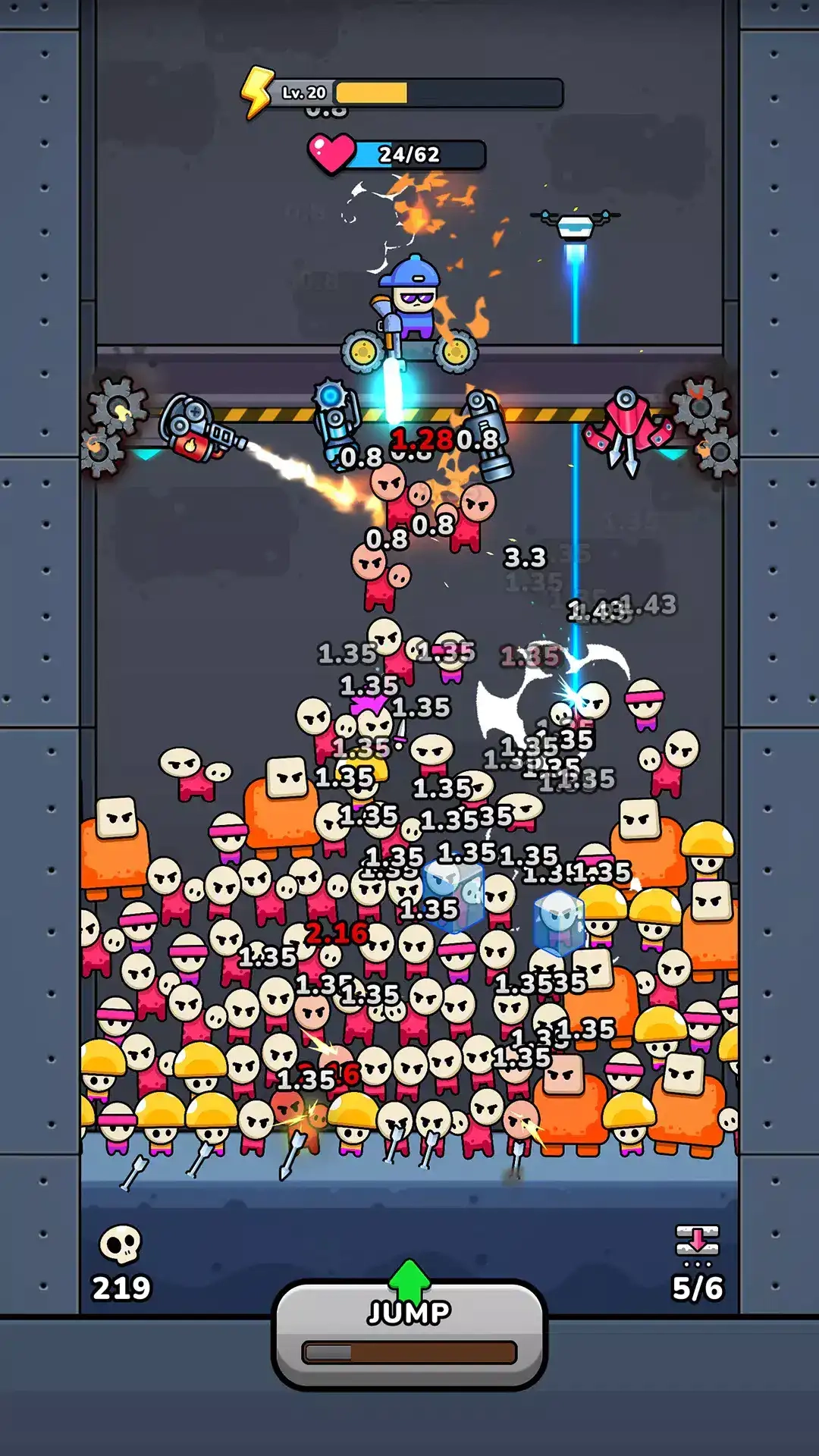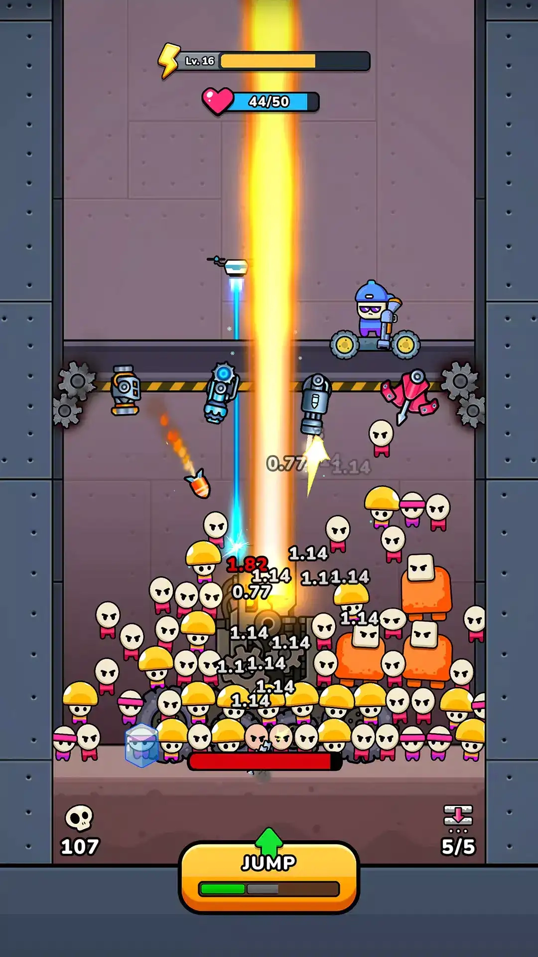 4、在关卡逐步推进的过程中,敌人的数量会不断增加,种类也愈发丰富,甚至还会出现特殊敌人。此时,充分利用载具的攻击能力,就能消灭更多敌人,从而完成关卡挑战。