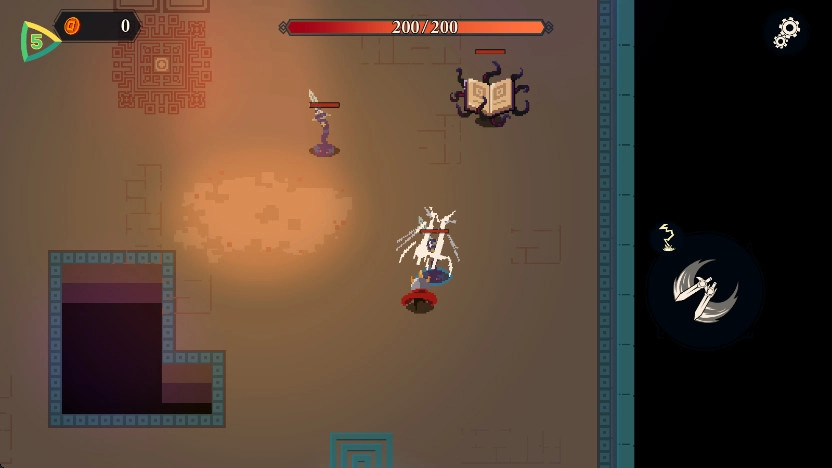 4、使用右边的攻击键对敌人发起攻击,敌人被击败后会掉落装备,此时点击互动键,即可捡起装备并学习。