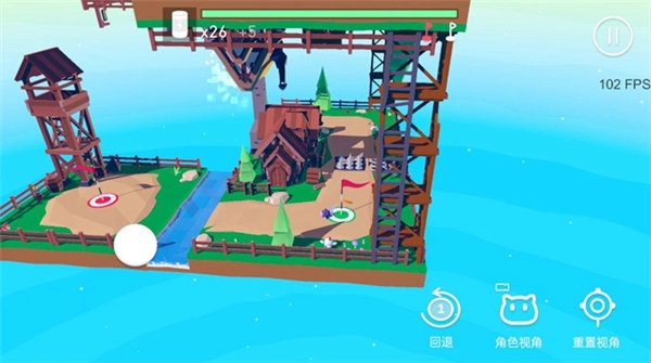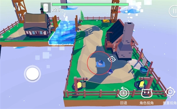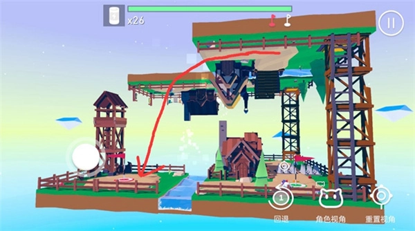登上上层平台后,你能顺利到达第一个目标点,但其他目标被一条河挡住了,没办法直接过去。
