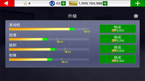 点击升级按钮可以消耗金币对车辆的属性进行升级。
