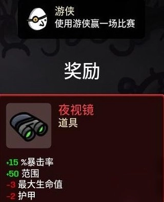 夜视镜:使用角色游侠通关任意的难度一次即可。