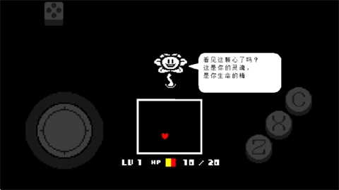 从摔倒的位置朝右边的门移动,进去后会碰到一朵花,它的名字是花儿。它清楚你刚到地下世界,对一切都很迷茫,所以打算把这里居民的生活情况告诉你,还会解释心形的用途。这时需要操控心形避开它分给你的力量,因为花儿内心十分险恶,想要置你于死地。就在这时,废土遗迹的守门人Toriel出现了,它把花儿赶走,并说会带你离开这个地方。