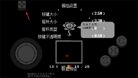 若要调整摇杆按键的尺寸与透明度,可点击界面左上角的骰子图标进行设置。