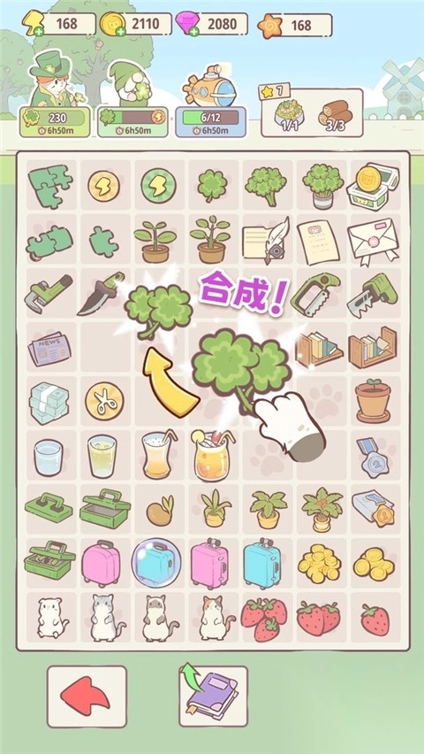 在猫咪庄园里,合成玩法是所有乐趣的开端。你能够把相同的物品进行合并,通过一回回巧妙的搭配,创造出全新的、更高级的物品。从修理所需的扳手、木材,到美味诱人的水果、甜品,每一次合成都是一次新的探索。这些新物品不但能满足你对庄园建设的需求,还能为完成任务提供重要支撑。