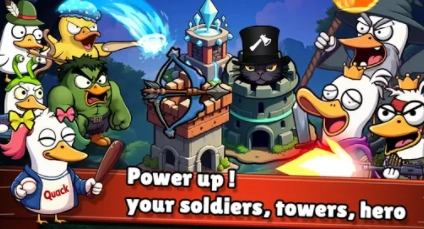 以鸭子为核心的趣味设定,把诙谐感融入战斗场景,带来别具一格的塔防玩法。游戏提供多种功能各异的鸭子角色,涵盖远程攻击、防御肉盾、法术输出等不同类型。同时支持离线自动收益模式,资源可自动积累,让玩家无需长时间在线或大量投入也能顺利提升等级。