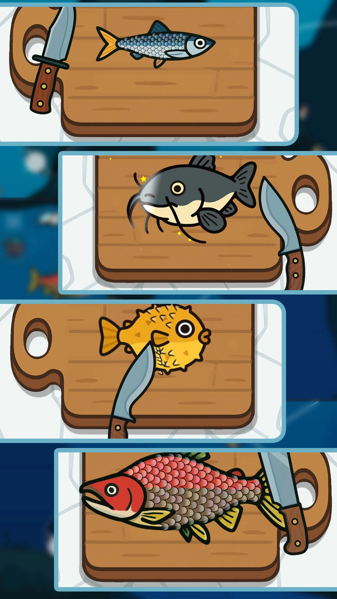 把捕获的鱼进行处理后投喂给海洋生物,完成喂养任务就能获取资源。