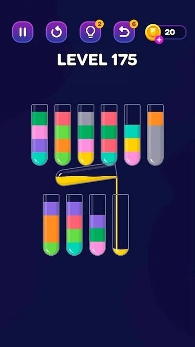 游戏里设置了大量不同难度的关卡,难度会随着玩家的推进而逐渐增加。在每个关卡中,玩家都需要按照特定的规则,把不同颜色的液体进行正确的归类,以此来通过每一关的考验。
