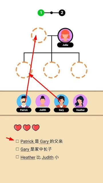 开启游戏后,首先遇到的是关于家族成员关联的初始挑战。你需要仔细解读给出的文字提示,从中梳理出人物之间的亲属关系,然后通过在树形结构的界面上移动各个角色图标,将他们放置到正确的位置,以此完成第一个家族支系的构建。