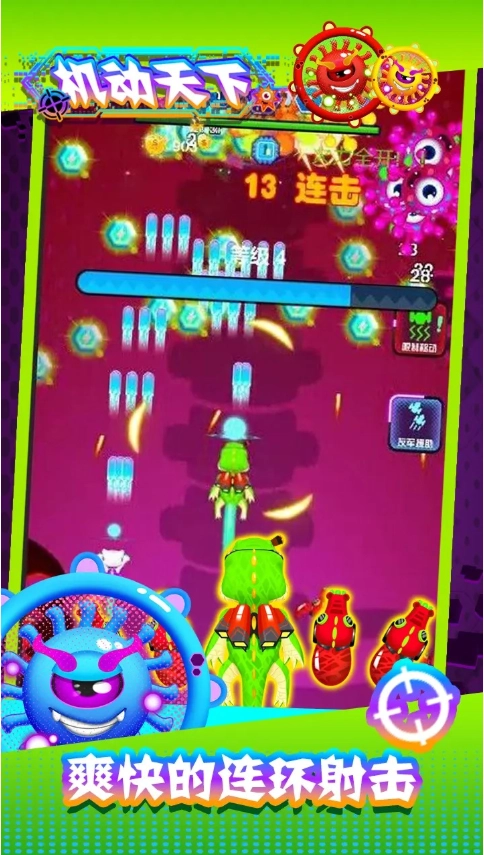 机动天下将引领你踏入一个惊险刺激的世界,考验你的反应速度与操作技巧,让你尽情享受射击游戏的无穷乐趣。在游戏里,你将化身为一名飞行高手,直面弹幕挑战与BOSS激战,体验休闲弹幕射击带来的刺激与快感。你准备好开启这场休闲弹幕射击的刺激之旅了吗?即刻出发,成为最强的飞行战士吧!