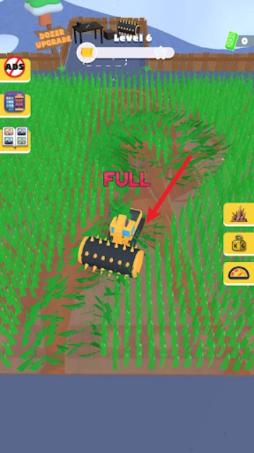 1、进入游戏后,拖动屏幕即可控制自己的推土机移动,清理场景中的物品,例如这里的杂草。