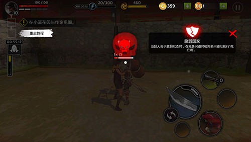 当敌方角色头顶出现红色危险标记时,点击右下角的闪避按钮就能规避伤害。