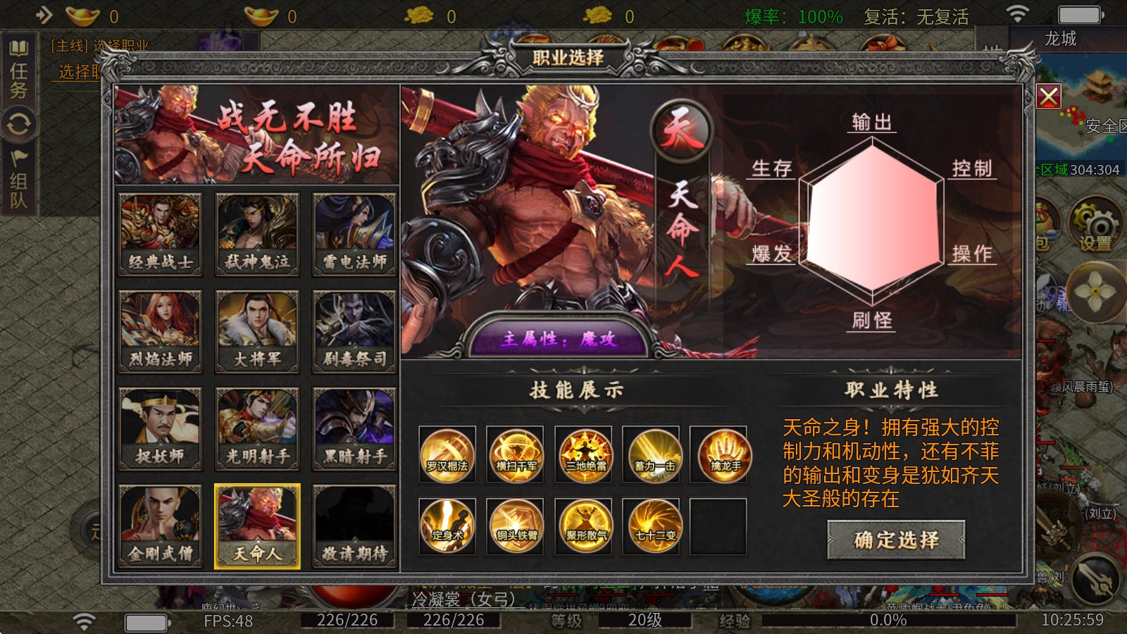 天命人:身负天命之躯,兼具强大的掌控力与灵活的机动性,输出能力亦不容小觑,变身后更如齐天大圣降世般威风凛凛。