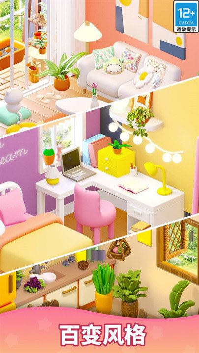 自由装扮:把两个相同的物品合并后,你就能得到解锁与升级每一件家具、每一处房间角落的道具,用来翻新房屋或豪宅,给它们重新粉刷装饰。