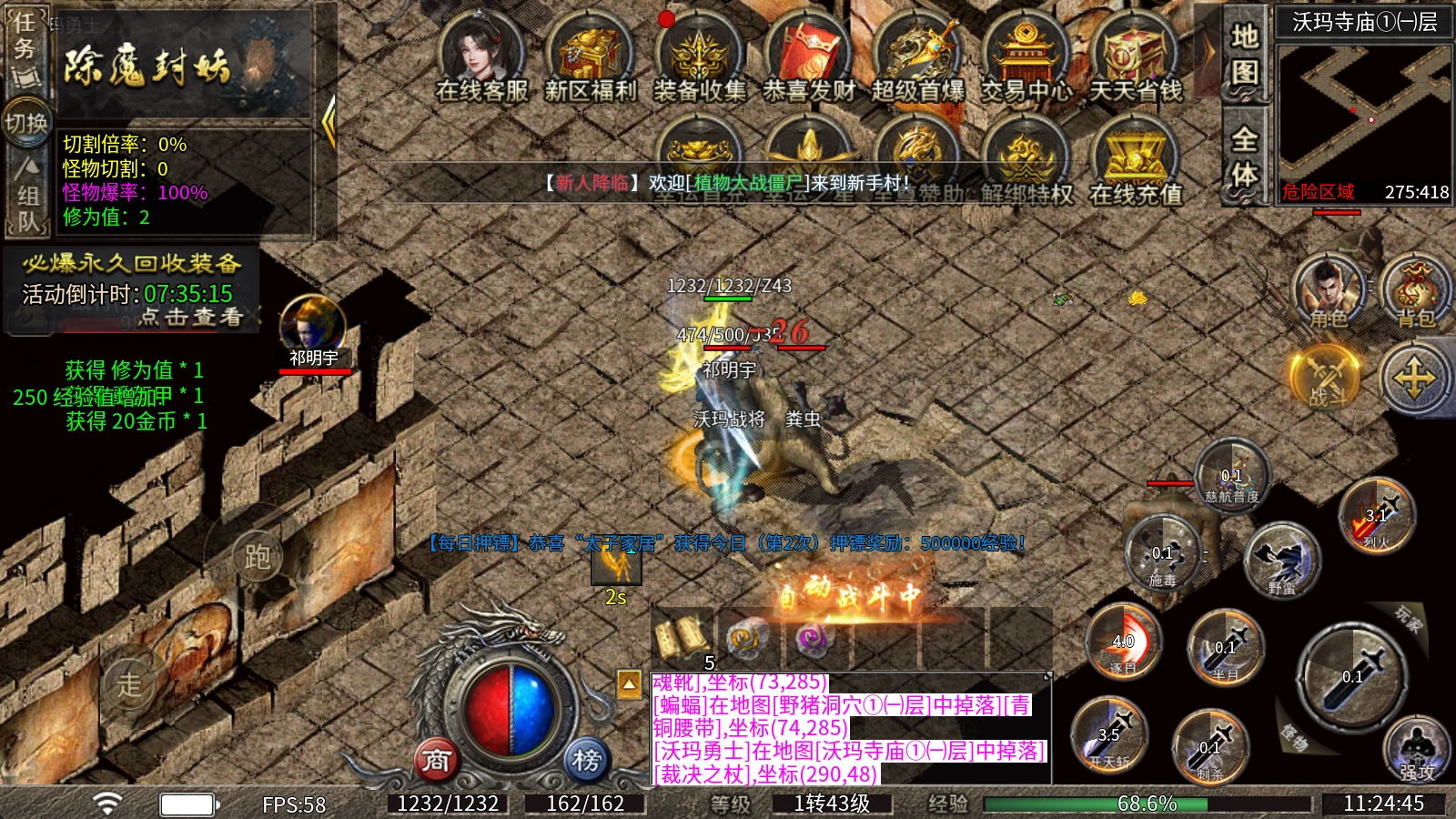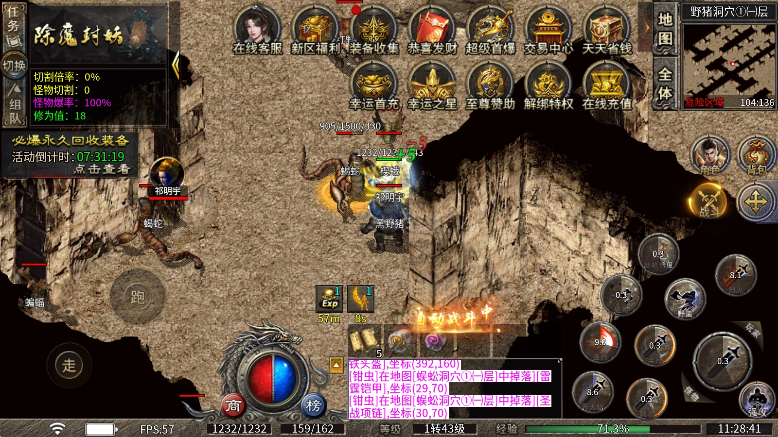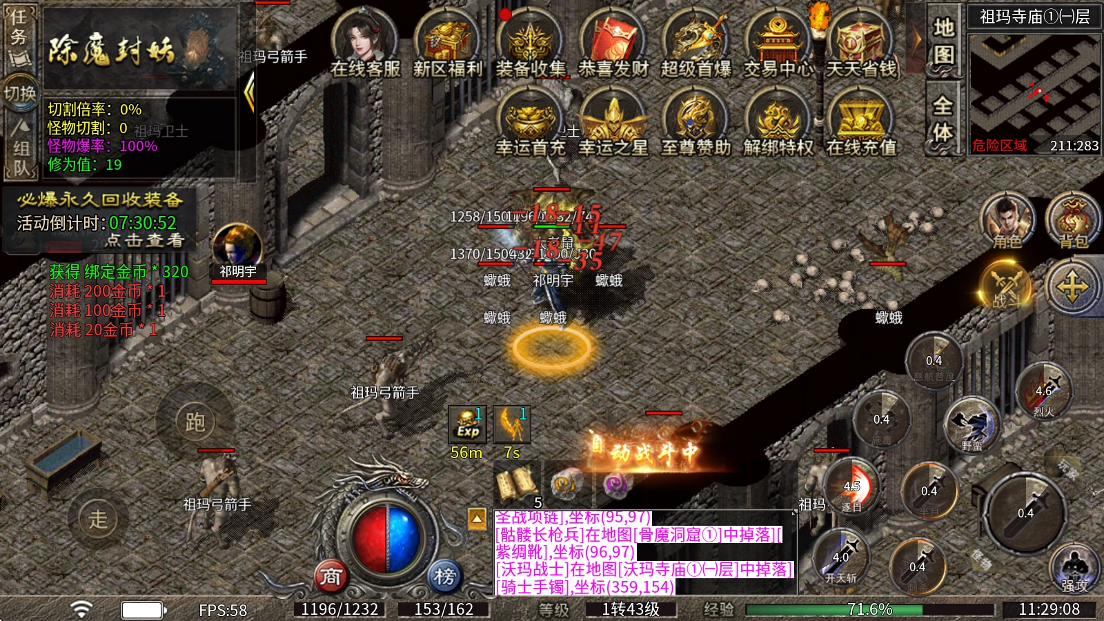恭喜发财:超级红包福利上线!打怪就能爆出奖励红包,所有BOSS均可掉落,无限制爆率开启,海量充值货币、各类材料都能免费获取。
