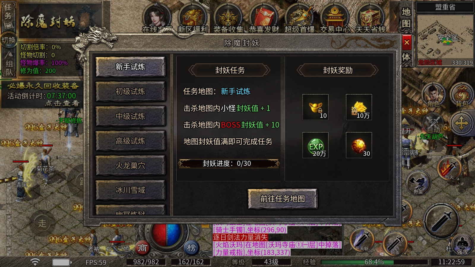 封妖悬赏:新手玩家可根据封妖悬赏任务完成,击杀对应的怪物即可获得大量的经验、材料、货币,提高自身实力。