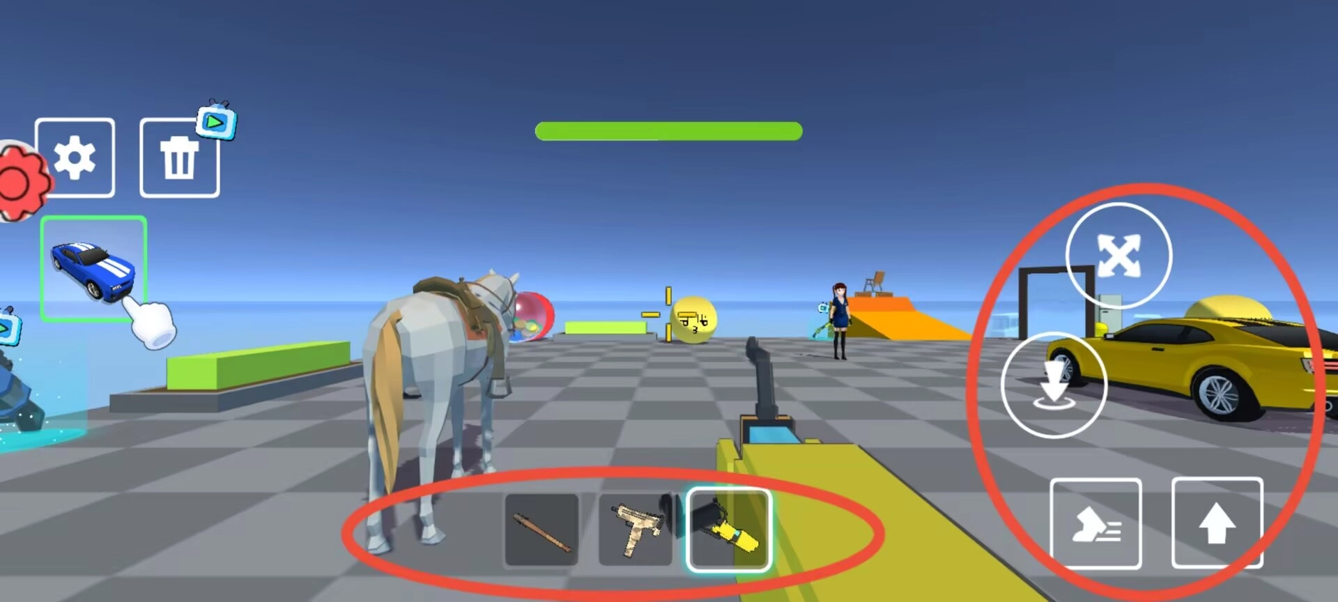 底部武器栏可切换三种枪械,右侧功能键负责控制射击与跳跃动作,左侧触控区域则用于实现角色移动操作。