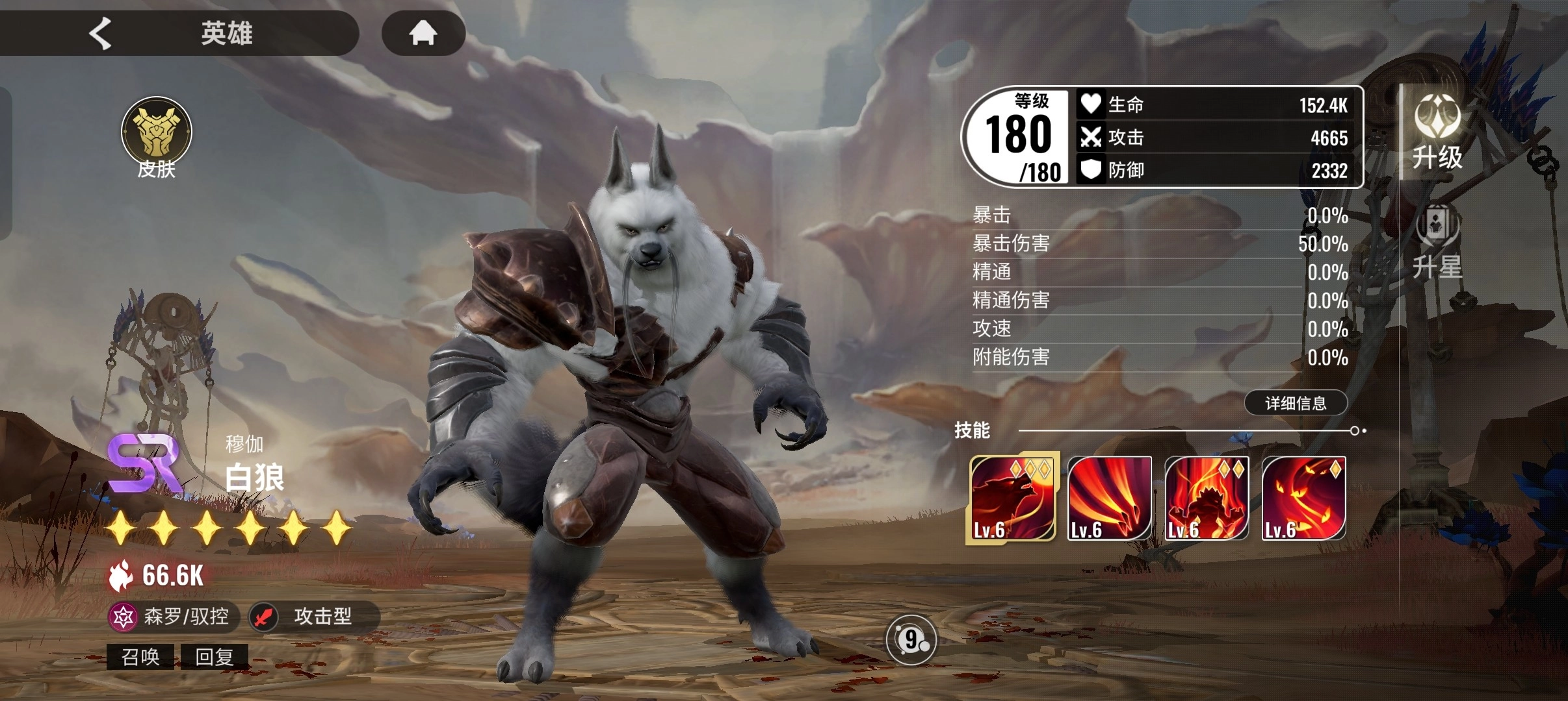 狼人作为SR级英雄里获取难度较低的存在,在召唤副本中始终占据着重要位置。当他的技能全部升满后,输出能力相当可观;而且小狼阵亡时还能为他回复生命值,自身坦度也很出色,几乎是必带的英雄之一,非常值得投入资源提升技能等级。