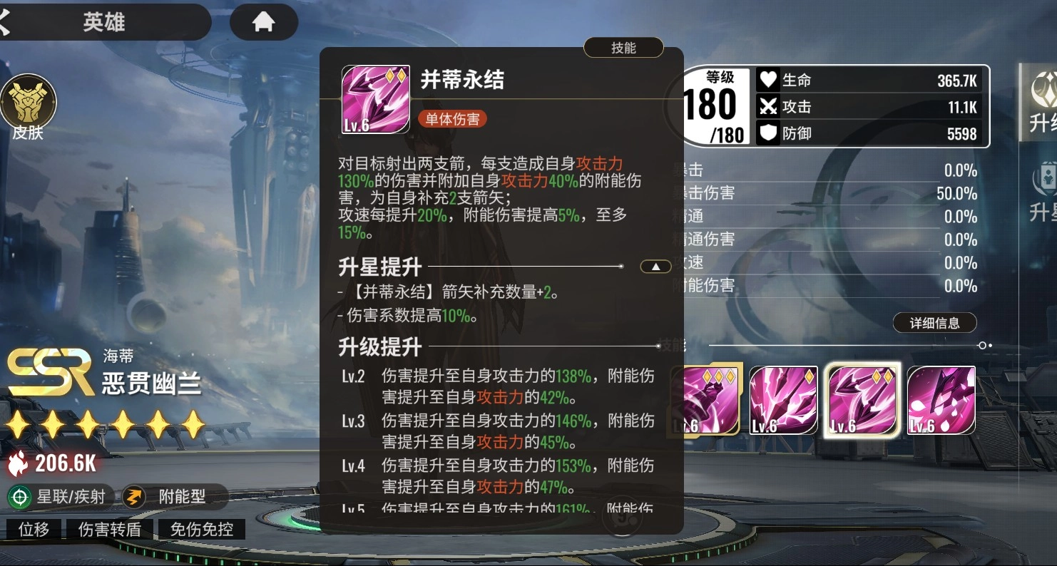 海蒂具体的技能解析我在上一篇装备推荐里已经做过完整剖析,这里就简单说一下。首先是【箭袋】机制,它能让海蒂的普通攻击附带高额赋能伤害,但要注意,并不是攻速越高越好——海蒂的【箭袋】补充是固定时间进行的,过高的攻速无法带来成正比的收益,所以只要卡到技能要求的60%攻速就行,详细内容可以看我上一篇文章。