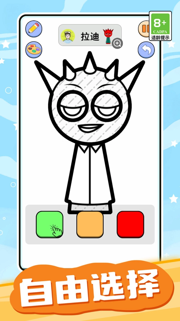 这里汇聚了不少节奏盒子里的经典角色,玩家能够给这些角色的简笔画上色,让它们的形象得以重现。