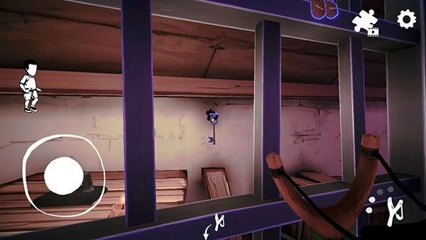 然后点击右下角的按键,利用弹弓将墙上的钥匙击落。