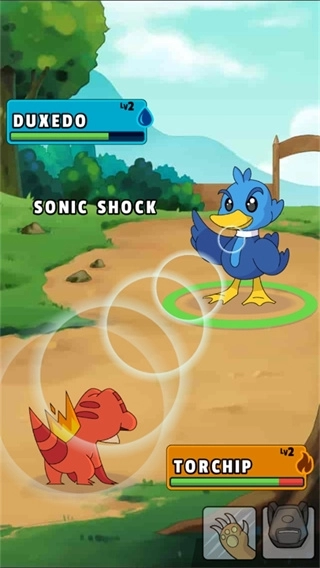 采用回合制玩法,每位玩家在一轮中可召唤自己的精灵发起一次进攻,直到其中一只小精灵死亡为止。