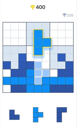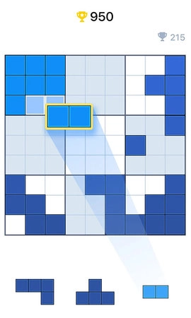 玩家能够通过拖拽方块的方式,将其放置在九宫格的格子里,每个格子仅能容纳一个方块。游戏启动时,玩家会拥有若干初始方块,在游戏进程中,新的方块会持续生成。玩家需要依据出现的方块的形状与颜色,挑选恰当的位置进行放置,从而实现消除的目标。当某一整行、某一整列或者某个九宫格被方块完全填满时,这些方块就会被消除,同时玩家会得到对应的分数。
