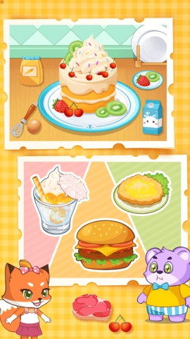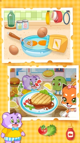 宝贝汉堡店是一款以模拟经营为核心的动物餐厅主题游戏。在这里,孩子们能化身汉堡店的小老板,亲手制作各式各样的美味汉堡与甜品。游戏里设有三道特色菜品——香炸肉排、芒果芭菲和招牌汉堡。通过动手制作这些食物,孩子们可以学习食材处理与烹饪的小技巧,深入了解食物从原料到成品的制作过程,进而逐步培养独立生活的能力。同时,游戏也十分注重对孩子们经营管理能力的塑造:他们需要依据顾客的不同需求,合理规划生产与销售环节,不断提升店铺的运营水平。