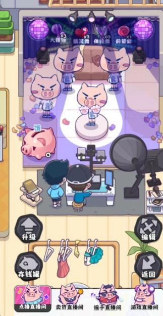 在挂机玩法里,解锁更多直播间,让主播进行各类直播来获取收益。
