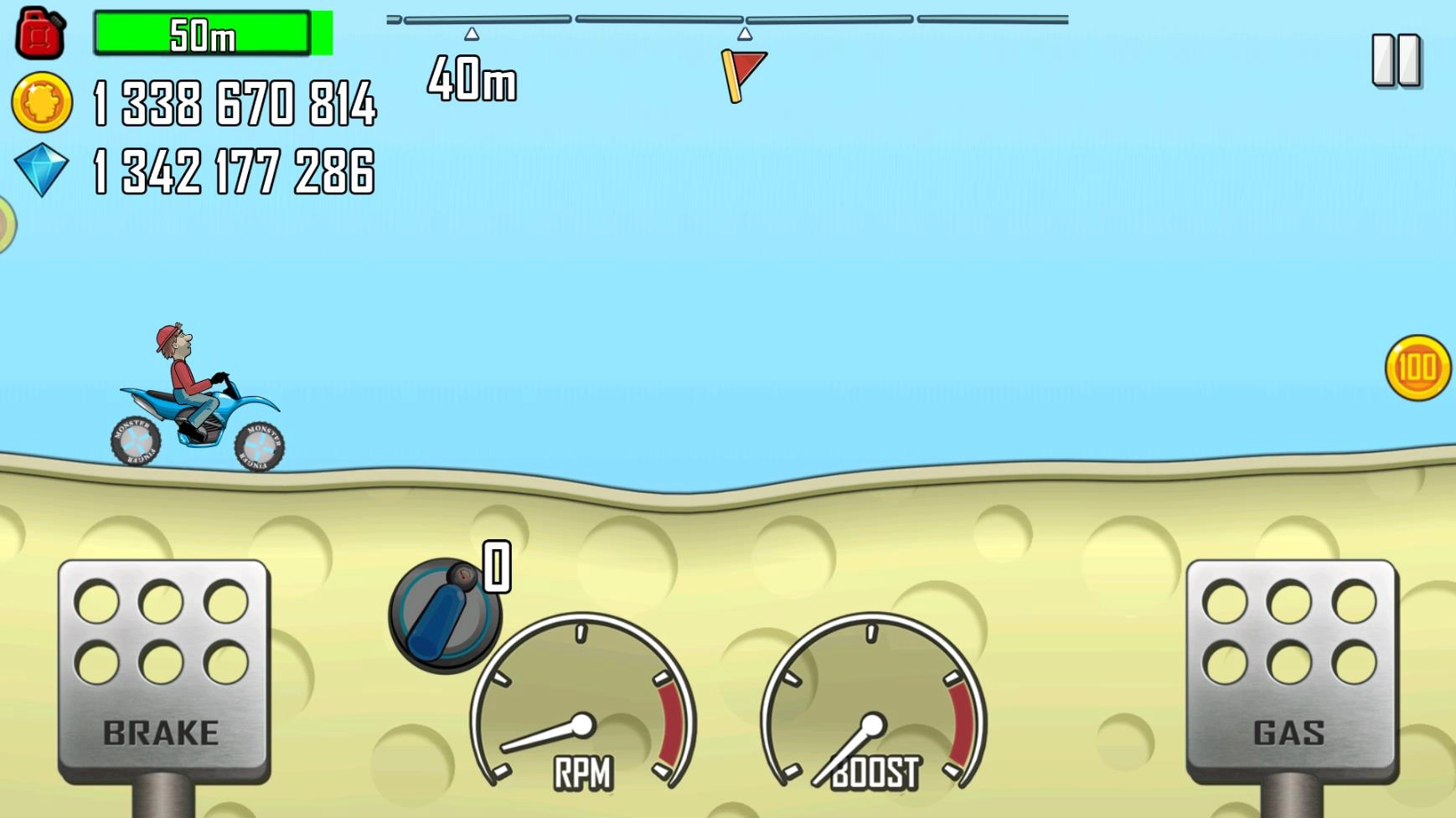 游戏前期先用初始车辆跑田园地图赚金币,等金币攒够了就买摩托车,接着解锁沙漠地图,之后两张图都刷一刷距离,拿些等级奖励。再往后解锁高速公路,然后是月球和新兵训练营。期间剩下的钱可以用来升级摩托车,但要注意别升满级。