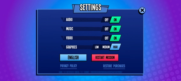 当然,在开始闯关之前,你可以先进入设置界面,根据自己的喜好来调整音效、画质和语言等选项。