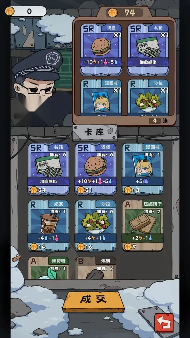 结局四的玩法提示:小偷被成功抓回后,狱警会允许你离开。此时观看三倍奖励的广告能获得150砂,这些砂量基本足够兑换SSR卡,所以不用再和老大进行交换。你可以把煤卖给老大换取SR卡,之后再将SR卡卖给狱警来获取金钱。