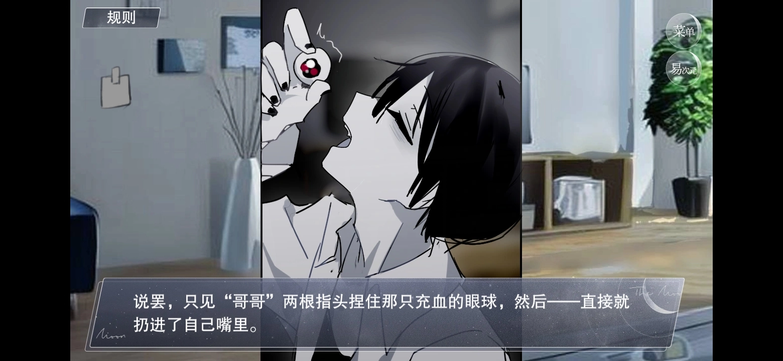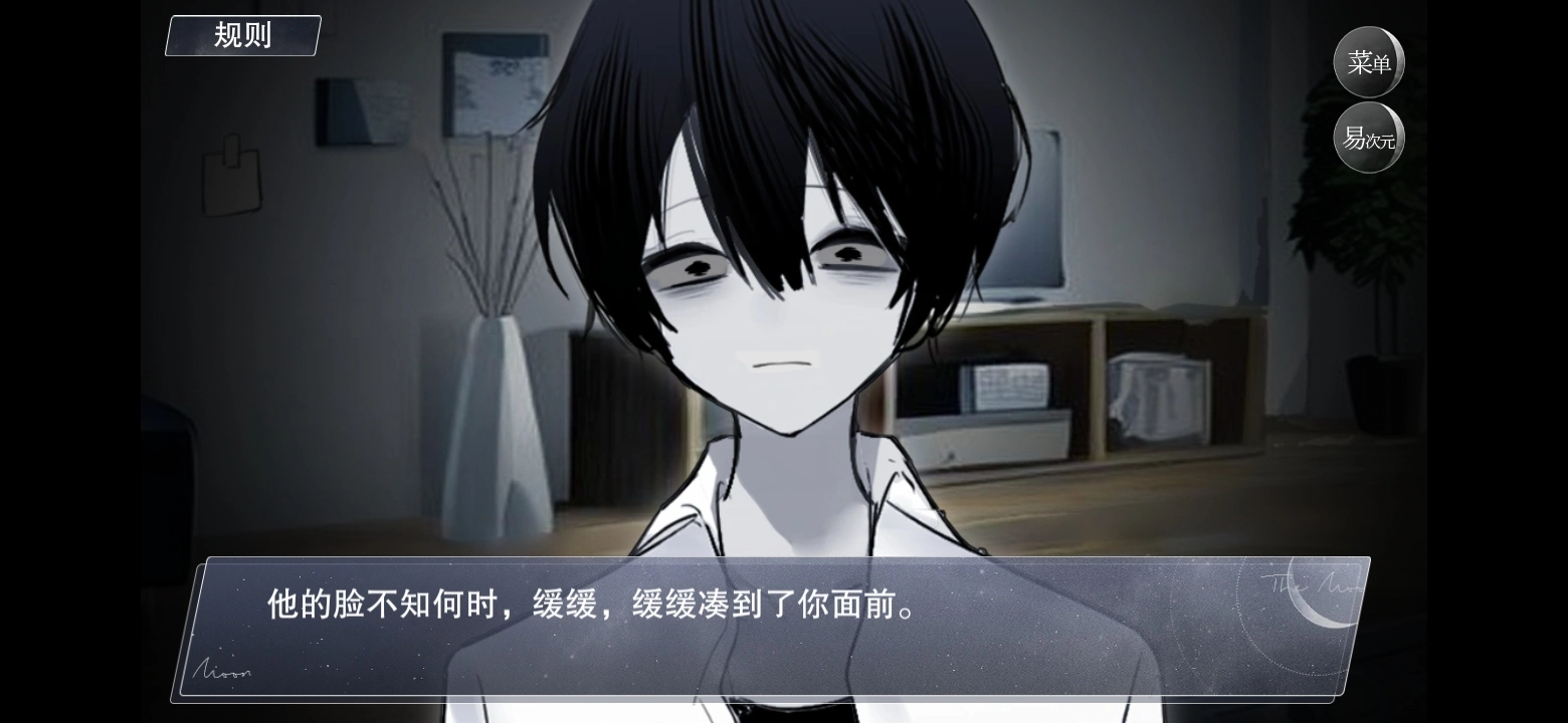 在这个设定里,存在着一系列充满诡异色彩的规则,玩家必须遵循它们,不然就可能引发不好的结果。比如,游戏里的纸条上会标注相关规则,玩家做出的不同选择,会对角色的亲密度和侵蚀度产生影响。