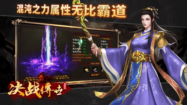 决战传世超爽版,这是185三职业的传世版本,元宝和充值都能爆出来,所有装备、材料和道具都能在游戏里获取,绝对是让你热血沸腾的超爽版本!上线就直接送全屏拾取和自动回收功能,让你刚开局就能下地图畅快刷怪,升级和打宝都超级轻松!特色铭文系统还自带炫酷特效,只要获得一条铭文就能直接起飞!