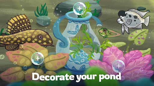 收集漂亮的水下植物与装饰物件:装点你的池塘,使它成为一座令人惊叹的淡水水族世界,里面遍布着引人入胜的小生物。
